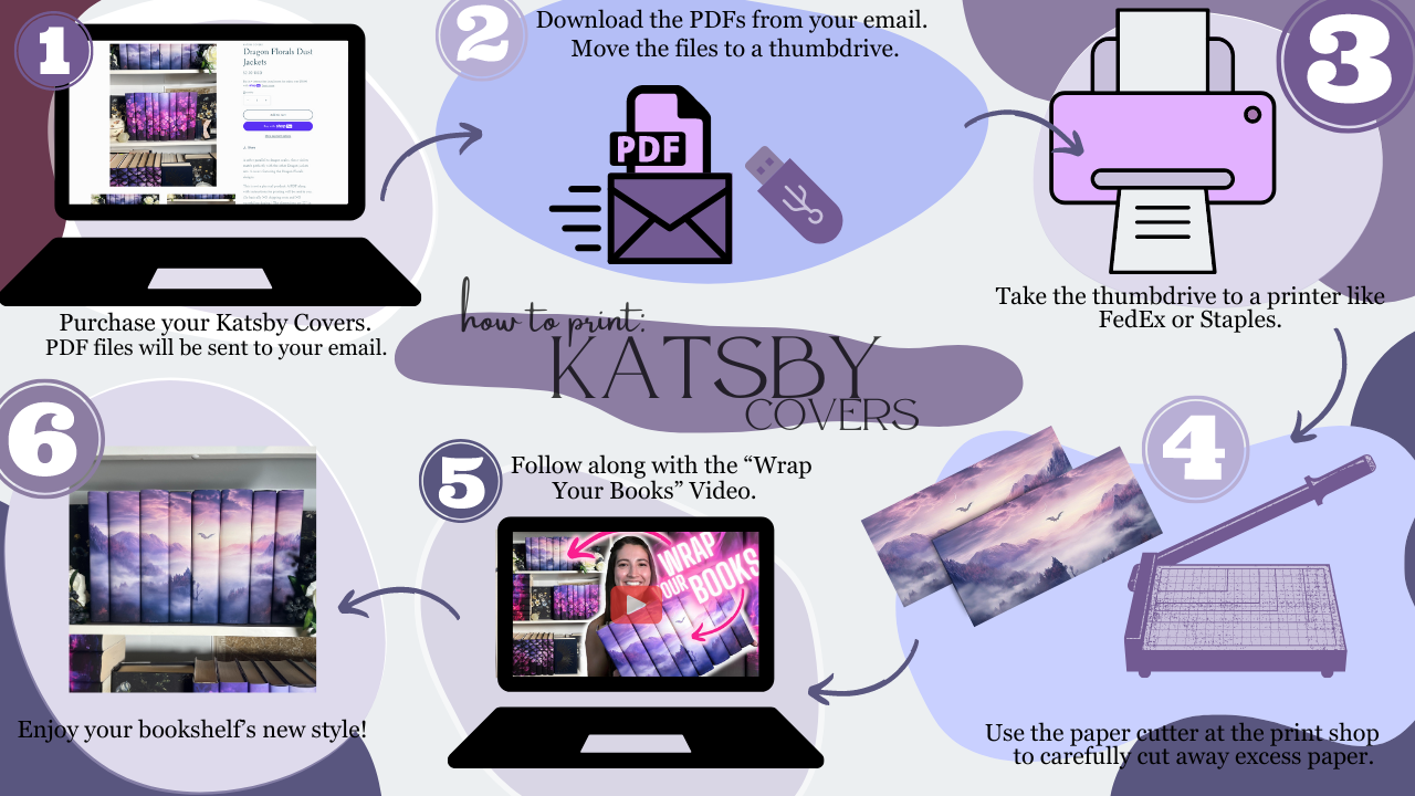 Get your Katsby Covers sent to you. All the printing and cutting done for you, simply wrap your covers over your chosen books.